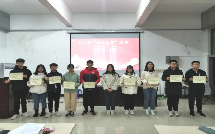 会议伊始,综合办公室负责人刘攀峰进行2007so太阳集团学生会规章制度讲解,综合办公室负责人李贞霖汇报各部门考核结果。随后,我院学生会执行主席吕裕婷宣读«关于表彰2007so太阳集团十一月每月之星的决定»并颁发荣誉证书。会议最后,“每月之星”代表李琼钰进行发言。