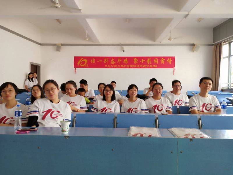 领略了母校的新风光,校友们来到当年上课的教室,换上了见面会班服,大家依次坐下,老班长像当年一样点起了名。先由老班长带头大家各自谈了谈这十年自己的发展和现在的状况,有的人毕业后选择了自己创业,有的人选择继续考研深造,还有的人最后一起幸福地走向了婚姻的殿堂。