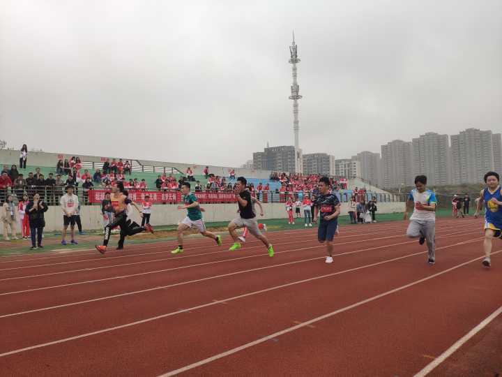 16营销一班张祉骏同学以12'19的优异成绩勇夺男子100米比赛第一名。17金融二班王昊和17营销一班甘伟鸿分列二、三名。