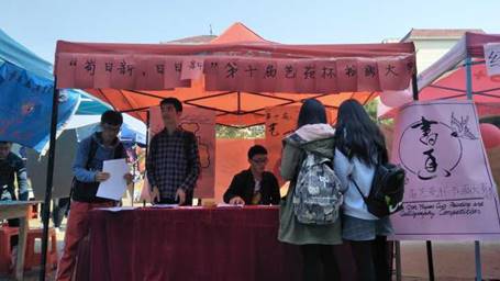 11月9日,经管学院第十届艺苑杯书画大赛报名活动在北区一食堂前进行。