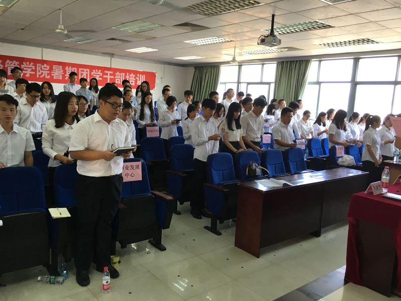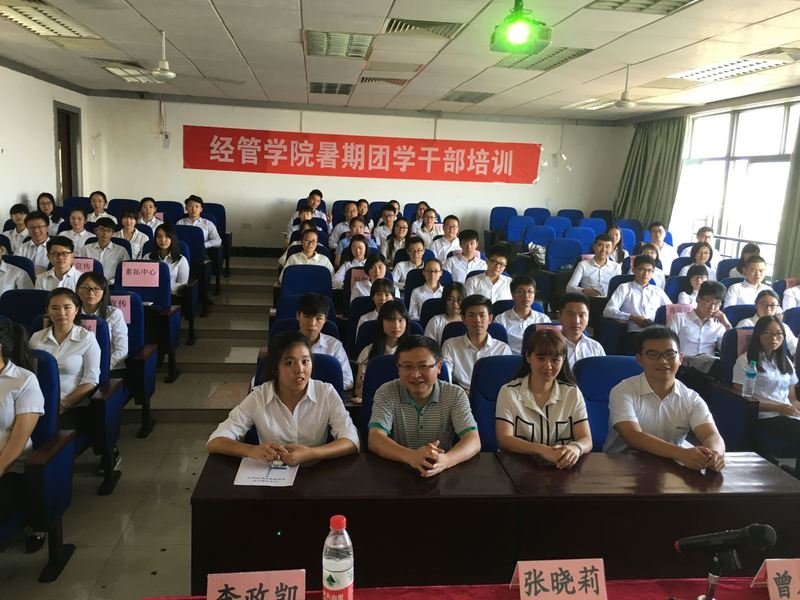8月29日上午,2016年学生干部培训开班典礼如期举行,出席本次活动的嘉宾有经管学院党委副书记曾友田、团委副书记张晓莉、第36任学生会主席赵静雅以及第36任学生团委副书记李政凯,经管学院第36任全体学生会干部参与本次活动。