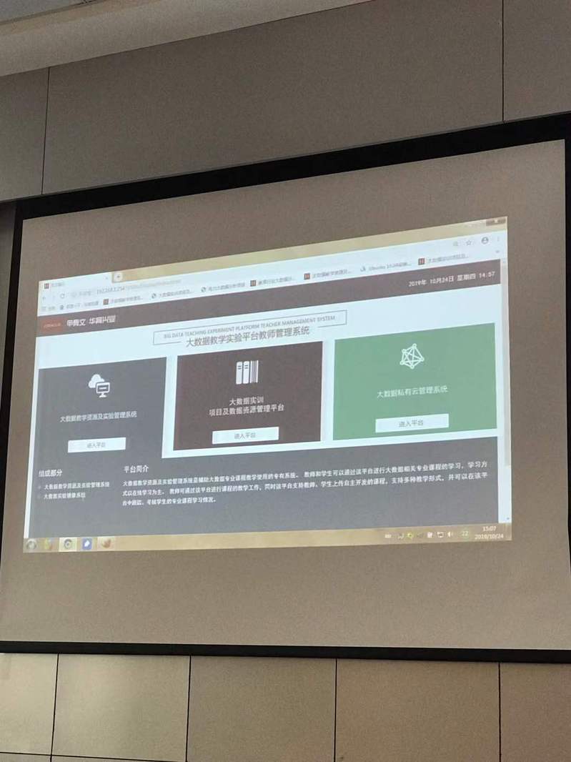 10月24日下午3点-5点,统计系在新成立的金融与大数据实验室举行大数据软件应用培训,由Oracle大数据公司技术人员讲解大数据实验操作步骤和试验流程,统计系12位老师全程参加培训,并就自己感兴趣的问题与相关技术人员进行了交流与沟通,为今后的相关专业课程的开设打下理论与实验基础。