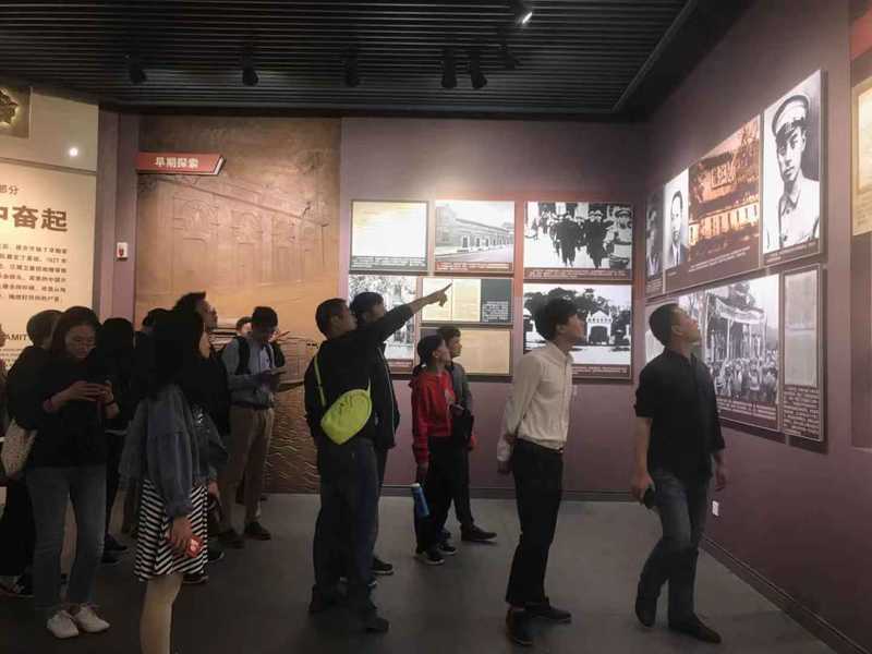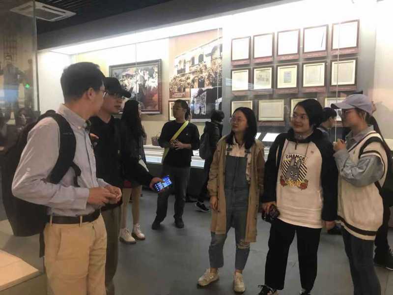 参观过程中,教师党员对学生党员进行现场教学,交流讨论党的发展历程以及党员规模等问题,鼓励青年党员不忘初心、牢记使命。