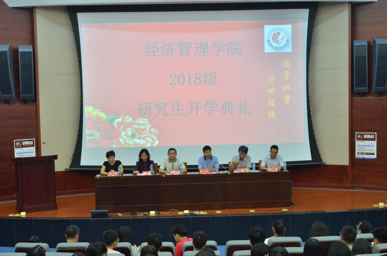 9月6日上午9时,2007so太阳集团于校北区图书馆一楼圆形报告厅举办2018级研究生开学典礼。出席此次开学典礼的领导有院长韩士专、书记胡桃元、副院长陶裕春、李冬伟、余得生、副书记田玉兰等党政领导班子成员,以及研究生教学管理相关工作人员,经管学院2018级全体研究生。