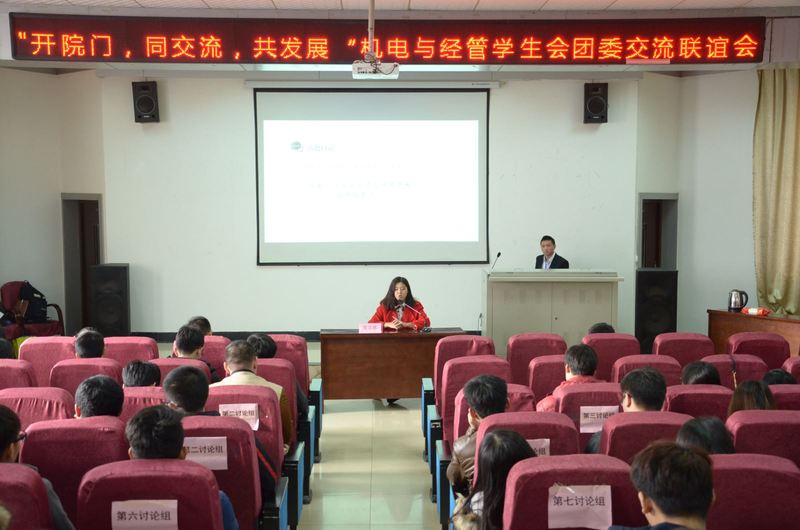 “开院门,同交流,共发展”,12月10日,机电学院和经管学院学生会团委交流联谊会在南区13栋408号学术报告厅举办。机电学院和经管学院各中心主席及部长参与了本次交流。