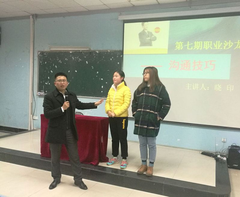 12月8日,由经管团委就业发展中心主办的主题为“沟通技巧”的职业沙龙于31栋召开。亚洲销售王子、总裁演讲与口才培训导师晓印担任主讲人,经管学院学工办主任刘修才以及全体16级新生班委参与此次职业沙龙。