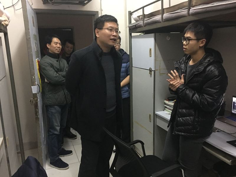 为进一步落实寝室卫生文明建设工作,11月28日晚,校学工处处长陈磊、经管学院学工办主任刘修财前往北区44栋经管学院男生寝室楼进行视察。