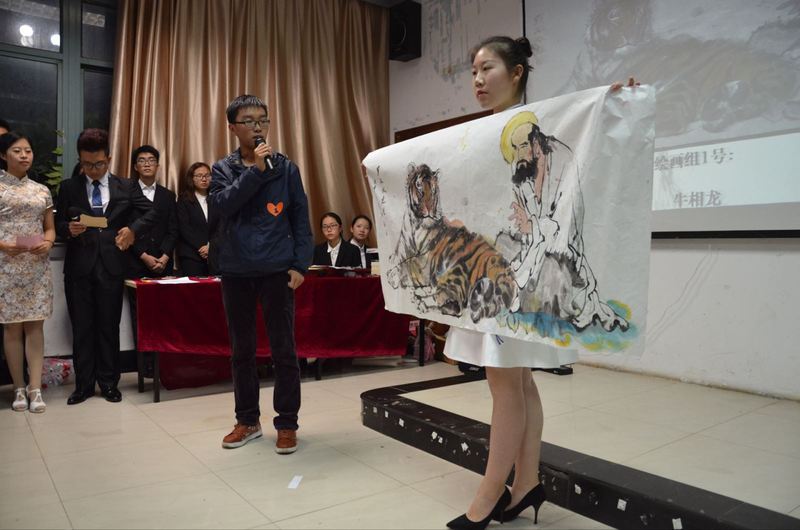 比赛以“我的梦,交大梦”为主题,将梦想、感悟、创意等融合到作品中,以书画的形式共庆建校45周年。生活情感与艺术创造相结合是本次比赛的亮点,通过作品创作引导同学们对艺术更深刻的感悟。本次比赛分为绘画组、硬笔组、软笔组三组,内容丰富。比赛中,参赛选手依依登台阐释自己的创造灵感和缘由。每幅作品个性鲜明、意义非凡:或气质敦和,或雍容大方,或端正俊丽,或运笔纯正。丁磊对绘画组选手的创作立意和技术表示肯定,并鼓励选手大胆运用色彩,增强视觉冲击力。整场比赛现场气氛热烈,在歌舞表演的带动下,同学们都投身于这场艺术盛宴。同学们纷纷表示:“书画艺术陶冶情操,促进个人修养,让我们在纷繁喧嚣中找到最初那份宁静。”