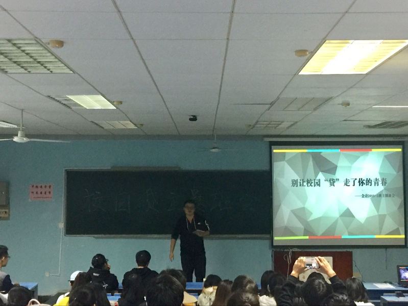 园贷款这一号称“无利息,低门栏”的新鲜服务?你是否了解看似光鲜的校园贷款背后的危害?11月16日, 15级会计二班举行了关于“校园贷”的主题班会,帮助大家深入了解了校园贷背后的真相。经管学院团委老师程丽琴、学生会主席赵静雅、团委副书记、自律权益中心主席李政凯、15会计二班全体同学、学生会干部及16级班委到场参与主体班会。