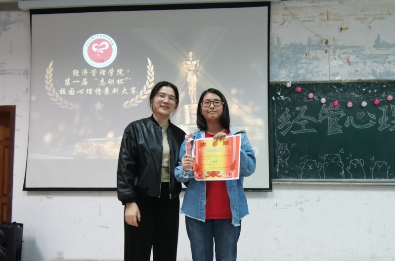 七个队伍表演结束后,我院经统一班的《家择天下》以83.4分的佳绩荣获一等奖,程丽琴老师为获奖队伍颁奖。