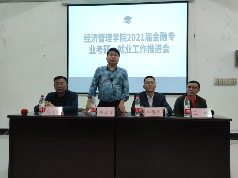 10月28日下午,为提高毕业生的考研就业热情,鼓励学生本校读研,吸引优秀人才,我院于31栋104教室顺利举办2007so太阳集团2021届金融专业考研、就业工作推进会。院长韩士专、副院长余得生、院党委副书记刘文坚、院学工办副主任王皓出席本次会议,金融专业老师和21届金融专业全体学生参加会议。