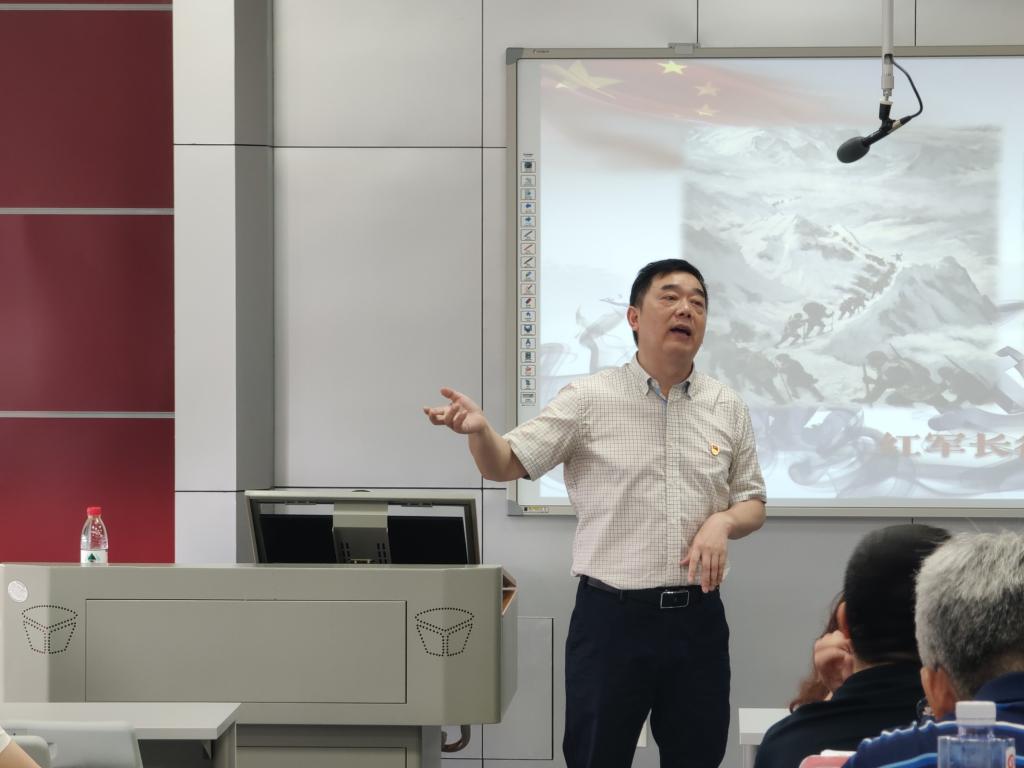 为深入贯彻习近平总书记关于党史学习教育的重要讲话精神,贯彻落实学校《关于在全校开展党史学习教育的实施方案》要求,推动学院党史学习教育走深走实,6月17日,我院特邀校党史宣讲团成员、图书馆总支委员、副馆长李建波,为全院教职工带来一堂题为“长征精神 永放光芒”的党史学习教育专题党课。