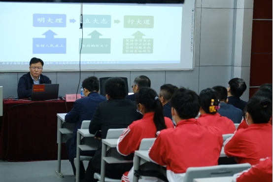 杨德敏着重强调法治精神和社会主义核心价值观,揭示了中国共产党的先进性和革命性,并且结合自身生活和学习实践,从“六个坚持”看立德树人的角度为大家做深入讲解。他指出作为一名人民教师要坚守立德树人初心使命,坚持人民至上、坚持胸怀天下、坚持自信自立、坚持守正创新、坚持问题导向和坚持系统观念,大力弘扬华交“火车头精神”,争做新时代的铁人铁军。