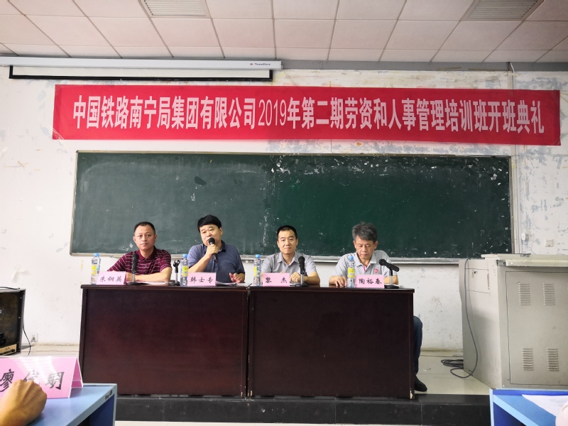 5月27日上午,中国铁路南宁局集团有限公司2019年第二期劳资和人事管理培训班开班典礼在太阳集团2007北区31-116教室举行。我院院长韩士专教授、院长助理朱钢英出席,副院长陶裕春教授主持开班典礼。