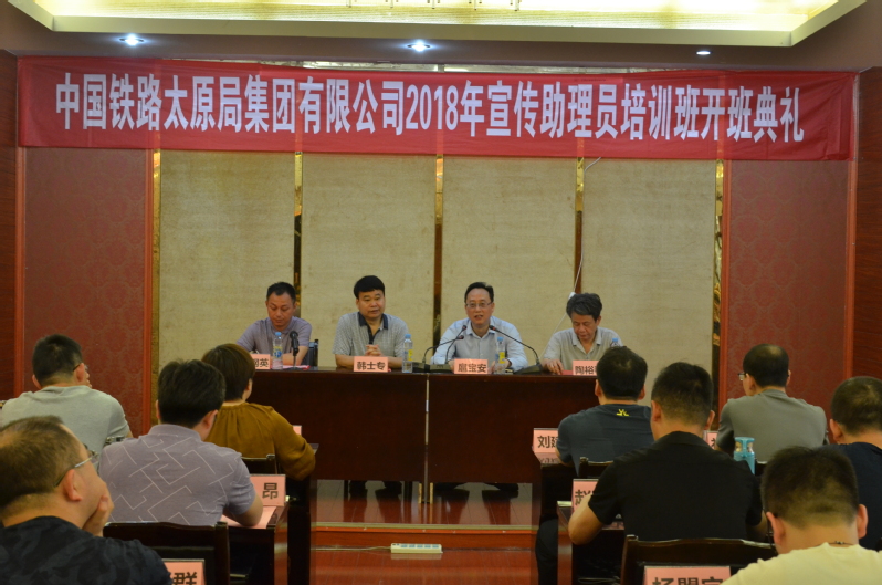 5月14日,中国铁路太原局集团有限公司2018年宣传助理员培训班开班典礼在太阳集团2007南区专家楼顺利召开。到场的嘉宾有经管学院院长韩士专,太原铁路局宣传部部长扈宝安,经管学院副院长陶裕春,院长助理、培训班班主任朱钢英,会议由陶裕春主持。