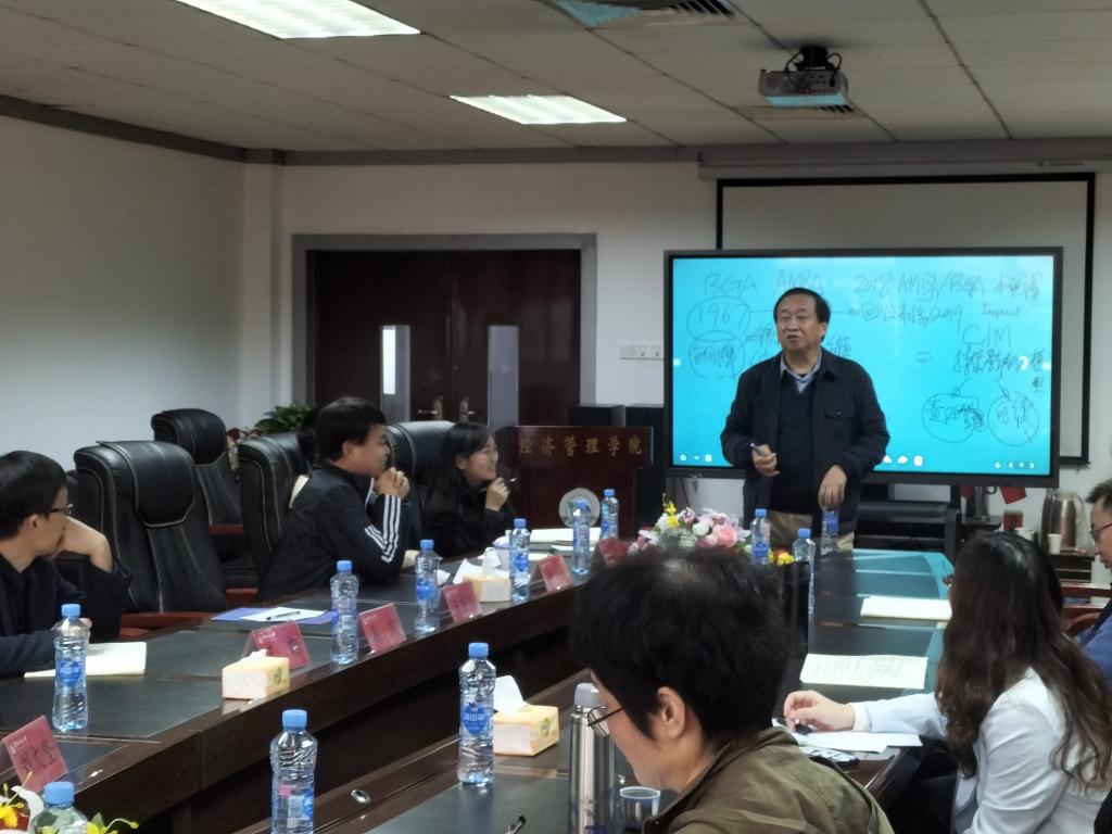 我院院长韩士专首先代表学院对王重鸣教授的莅临指导表示热烈欢迎及衷心感谢,并简要汇报了我院BGA认证工作的进展情况。