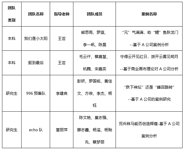 我院对本次大赛高度重视,积极组织学生参赛。自2021年3月22日组队报名以来,在学院案例管理中心、研究生导师及本科生学业导师的动员号召下,同学们积极主动参与,最终有两支研究生团队和两支本科生团队进入本届大赛初赛的第一阶段。