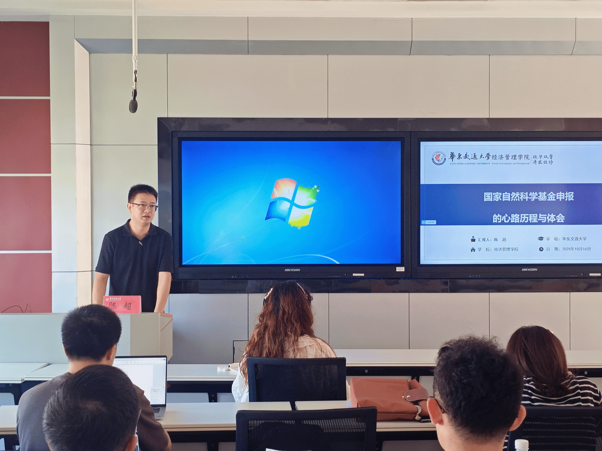会上,陈超副教授分享了自己申报课题的心路历程。他从2025年国家课题热词切入,指出当前管理学研究的核心趋势、热点领域和未来方向,并从选题需要的前沿性、重要性和创新性出发,强化标题设计的具体性和深度性。随后,陈超副教授强调课题摘要需直接点明研究要解决的核心科学问题,不绕铺垫,建议字斟句酌来写,同时从文献综述、研究内容、参考文献、参与成员等方面为学院科研人员提供了宝贵的建议。