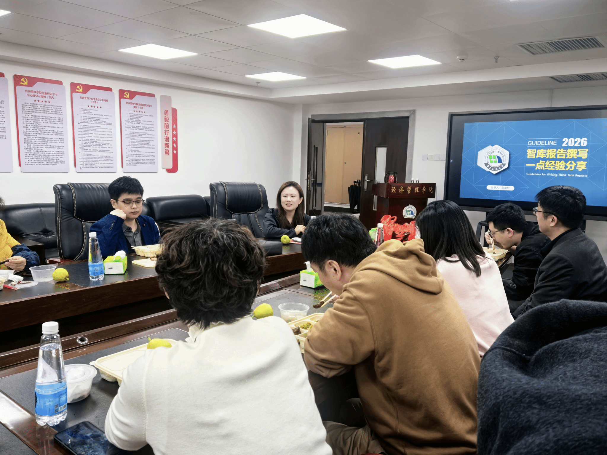 为进一步提高我院师生撰写智库报告水平,明晰智库报告创作逻辑与核心要点,4月2日中午,我院于2007so太阳集团31栋908室顺利举办本学期第一期学术午餐会。本次午餐会以“智库报告撰写一点心得分享”为主题,邀请到周晨松副教授进行分享,会议由副院长周才云教授主持,学院20余名师生参与本次午餐会。
