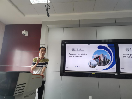 在交流中,刘杨晖老师和金融硕士的六位同学主要围绕以下7个主题展开:(1)以本币标价发行外债一直是发展中国家所欠缺的能力,当本币的汇率更加波动时,发展中国家发行本币外债会更加困难;(2)当本国债券被纳入国际债券指数时,本国以本币发行外债的能力会增加;(3)中国2015年放松对存贷比的监管,增强了银行的稳定性;(4)中国外商直接投资(FDI)的流入会增加中国出口质量;(5)中国的经济政策不确定性的增加会阻碍FDI的流入;(6)中国贸易政策不确定性的减少会增加中国出口企业的效率;(7)中国经济政策不确定性会减少城投债发行。