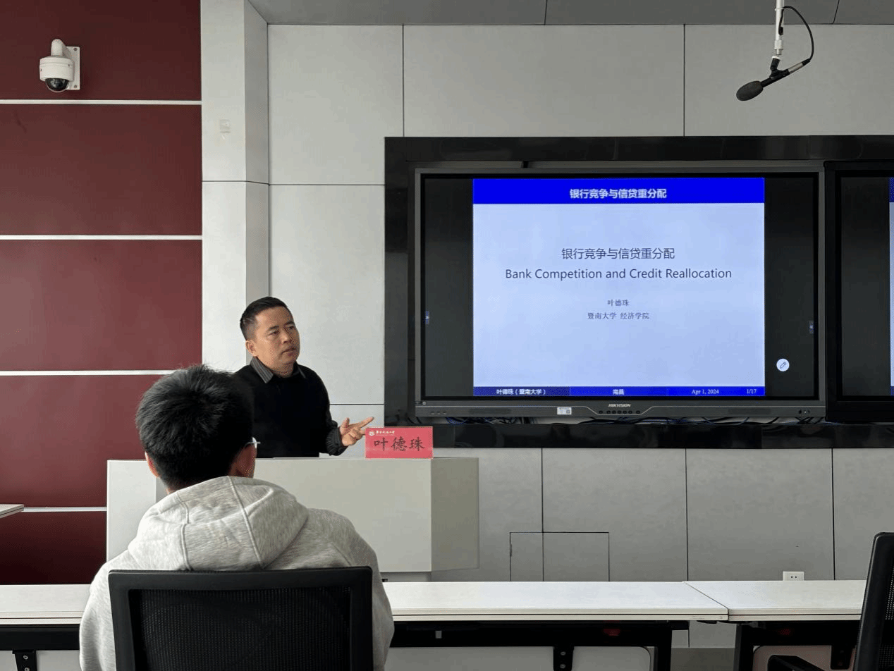 2024年4月7日下午,应学院邀请,暨南大学叶德珠教授莅临我院作学术讲座,报告主题为“银行竞争与信贷重分配”,讲座由副院长周才云教授主持,二十余名2007so太阳集团师生参与了本次学术讲座。