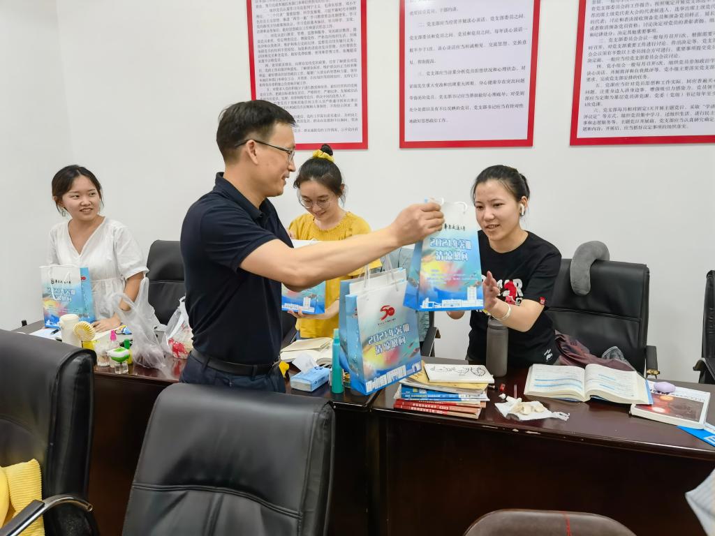 为进一步强化假期安全防范工作,确保学院留校学生暑期安全,营造温暖舒心的校园环境,7月30日上午,我院党委书记王朗、党委副书记刘文坚一行慰问留校学生并发放暑期清凉礼包。