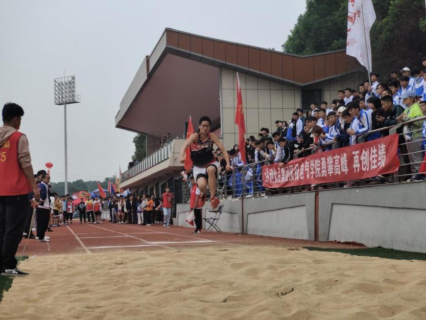 黄色沙地旁,他屏住呼吸,助跑,全力纵身一跃,平稳落地,这一系列的动作只在短短十几秒内就顺利完成。霎那间,全场轰动起来,观众们毫不吝啬地发出惊叹声与欢呼声。赛前,他在教练的悉心指导下,不断训练自己的弹跳力与助跑技巧,日复一日地做着高强度训练,只为在赛场上展露英姿。每一次助跑,都富有朝气;每一次起跳,都充满活力;每一次落地,都竭尽全力。平日里流过的辛苦的汗水,在这一瞬间都化为鲜花与掌声。他没有辜负教练的悉心教导,更没有辜负自己的艰苦训练。