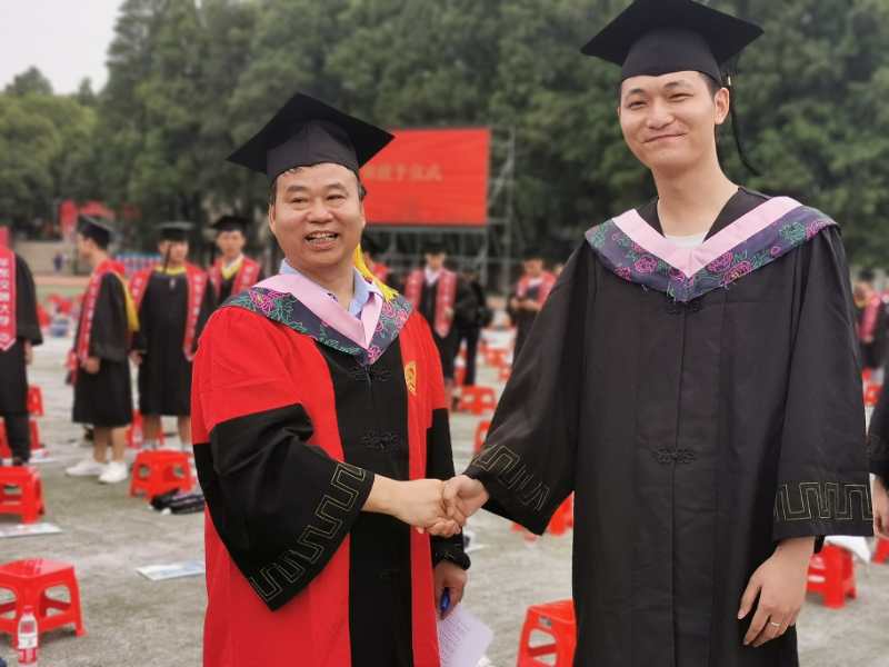 春发其华,秋收其实。在礼乐声中,在场的校院级领导下台行拨穗礼。万明书记、罗玉峰校长为优秀毕业生拨穗正冠,合影留念。我院院长韩士专教授出席典礼并为学院2020届全体毕业生行拨穗礼,并握手合影。