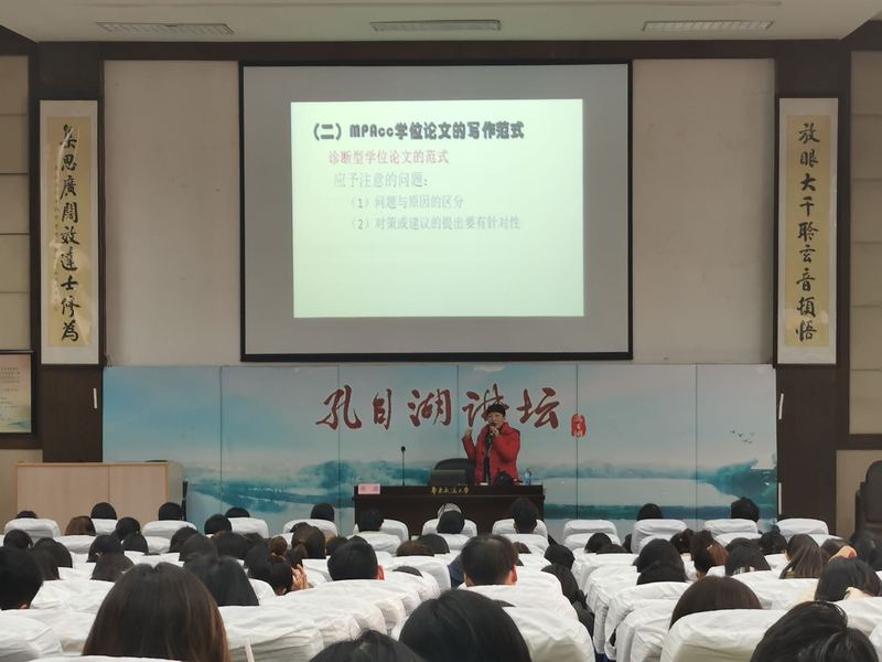 2019年12月12日下午,应我院邀请,全国会计专业学位研究生教育委员会委员、江西财经大学会计发展研究中心主任张蕊教授于交大南区报告厅202作了题为“MPAcc学位论文选题与撰写”的学术讲座。此次讲座由经管学院副院长李冬伟教授主持,全体会计专硕师生现场聆听讲座。
