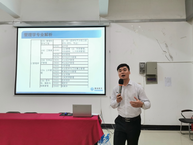 周国清老师将本次的分享分为五个部分。首先,他对经管类的专业进行了精细的解读,并运用经管类考研历年大数据向大家分析了以后考研的方向与情况。与此同时,他和大三考研的同学进行了面对面的交流,为他们做经验分享和考前动员。其次,与同学们仔细讲解了学硕和专硕的差别。期间,同学们积极发言,交流分享了自己在学硕和专硕如何抉择问题上的苦恼。随后,周老师介绍了经管类专业相对好考的985、211高校,并为大家介绍了如何选择学校的技巧以及初试科目的备考指导。他指出在报考方面要综合学校名气、地区因素、专业前景等进行考虑,为同学们解决了报考过程中的疑惑。最后,他介绍了复试与调剂的策略,鼓励同学们积极考研,努力拼搏,并祝愿同学们都能考上自己理想的院校。