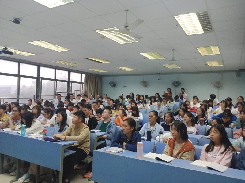 10月12号下午,在31栋222教室,大四优秀学长张祉俊以自身大一到大四的蜕变历程为例,与会计和国际经济与贸易专业的新生分享和交流大学生活经验。