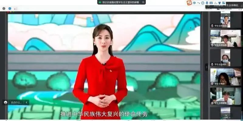 本次云团课围绕“非凡十年谱华章”“思想之旗领航向”“人间正道开新篇”“初心砥砺天地间”“团结奋斗正当时”五大篇章以及特别篇“盛会归来话少年”展开,以学者讲述、沉浸场景、互动交流等形式为学生们讲述了二十大中提到的历史变革。学生会成员们端坐于屏幕前,屏息聆听,领略党的二十大精神的重要意义和丰富内涵。