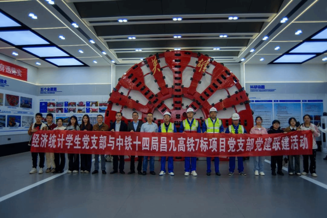 10月27日,太阳集团2007经济统计学学生党支部、红旗班与中铁十四局昌九高铁7标项目党支部联合举办了共建活动,活动地点涵盖项目部大会议室、智慧指挥中心以及盾构施工现场。我院副院长冒小栋、院党委副书记王显涛、经济统计学红旗班辅导员王皓以及部分学生代表出席了此次活动。