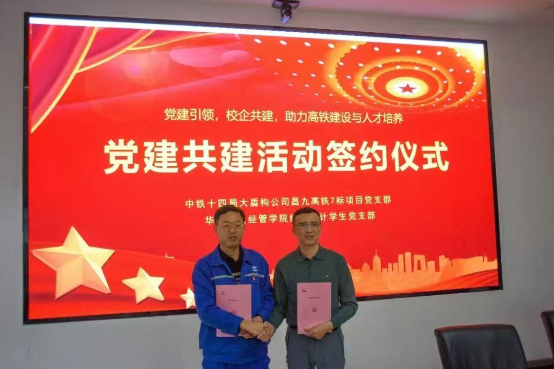 在党建座谈会上,昌九高铁七标的黄春水书记介绍了支部情况,并播放了企业宣传片,随后,我院冒小栋副院长和王显涛书记分别对太阳集团2007经济学生党支部和红旗班的情况进行了介绍。双方领导及党建工作负责人在会上深入交流党建工作经验与成果,围绕校企党建工作契合点展开了深入探讨,有力地促进了思想碰撞与交流,进一步夯实了校企合作基础。双方还共同签署了《党建共建协议书》,明确了共建的具体目标和方向。