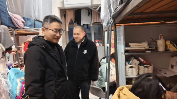 院领导与辅导员分组走访各年级寝室,重点了解学生们的返校情况和假期生活,特别强调了宿舍安全和用电防范等问题。老师们在与学生们的愉快交谈中,针对年级特性和学生个性,为学业发展和个人规划提出建议,鼓励同学们既要拟定目标,也要敢于突破舒适区,在新的一年里勇于挑战自我,追求卓越,以饱满的热情迎接新学期。