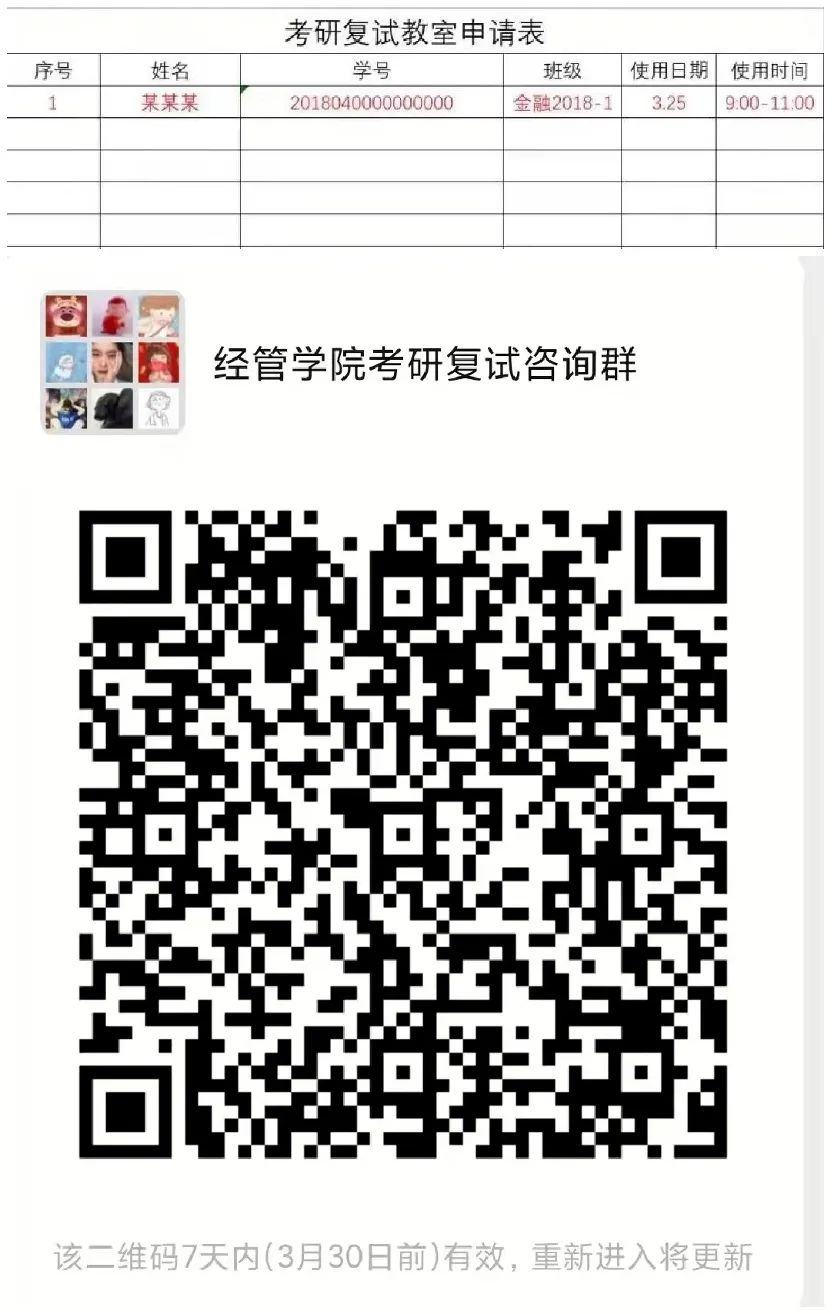 通过创建考研复试咨询群,了解复试同学需求,为其提出的困难和需求积极寻求解决方案。根据考研复试教室申请表,进行相关教室的安排和使用调度。