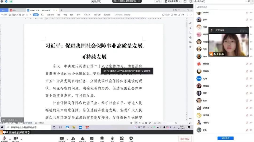 4月15日,中央政治局进行第二十八次集体学习,内容是完善覆盖全民的社会保障体系。为进一步学习讲话精神,我院会计学学生党支部的同学们开展了学习并发表了自己的看法和感想。