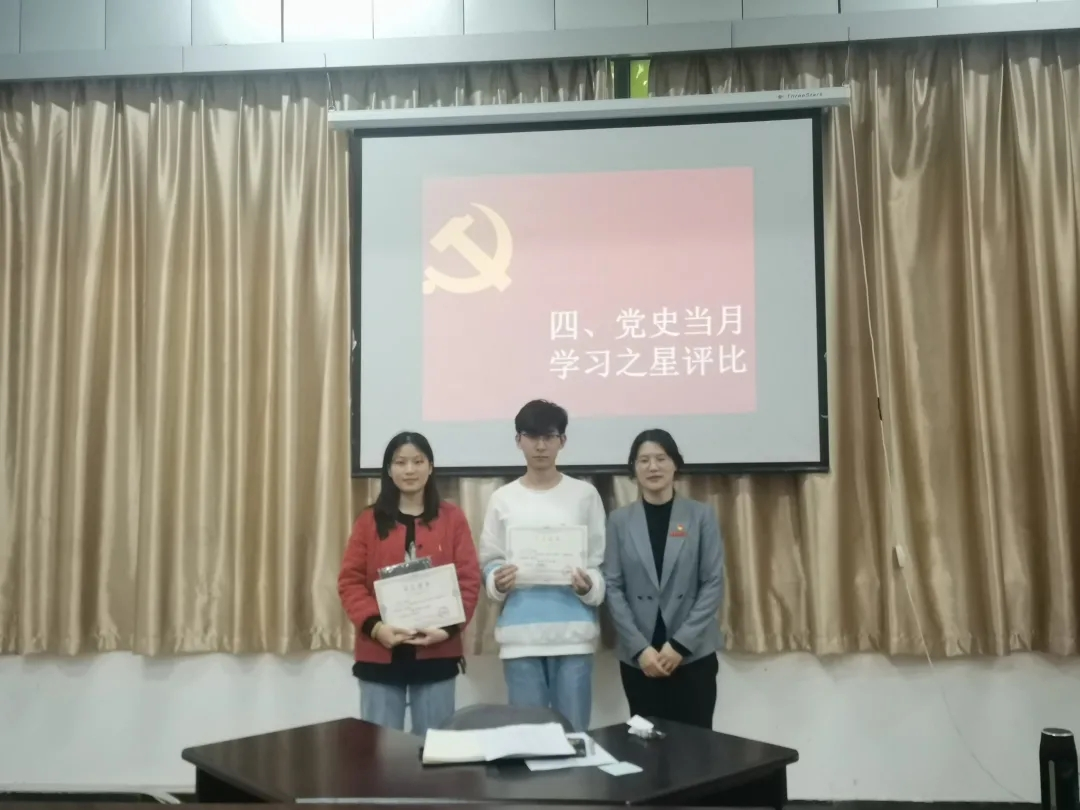 在会议的最后,程丽琴书记组织党员根据党史天天读活动计划落实完成情况和学习计划总结进行评比,现场进行投票选出四月学习之星,由程丽琴书记颁发证书、奖品,表扬两位学习之星,同时激励其他党员要向他们学习,努力学党史、悟思想!