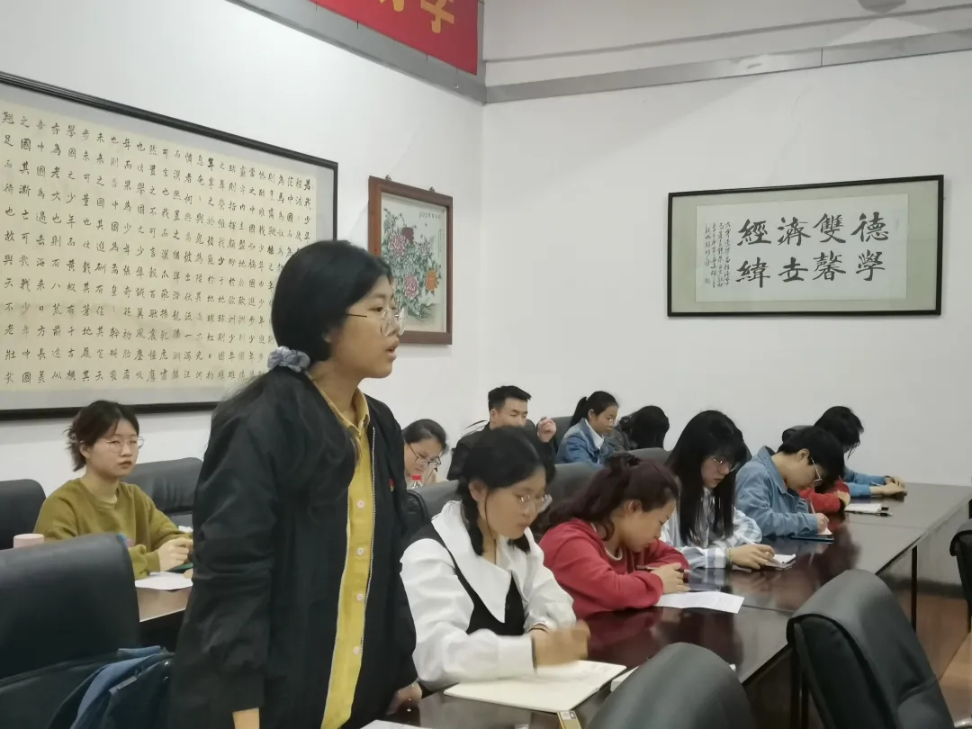 2021年4月28日中午,经管学院金融学学生党支部在经纬楼114会议室召开了党员固定活动日,由支部书记程丽琴同志主持会议。