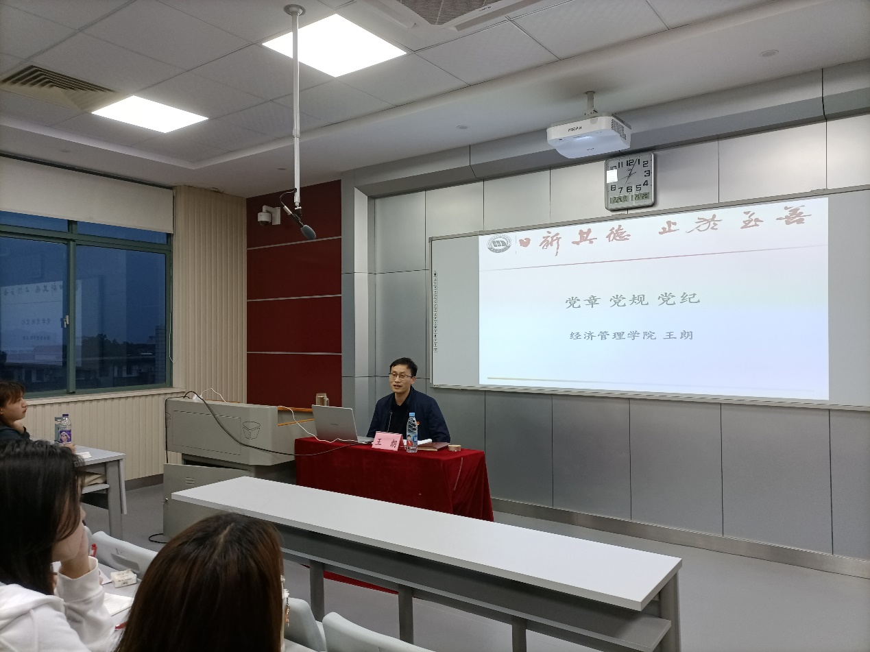 2021年5月18日晚,2007so太阳集团第51期业余党校第五讲在31栋634教室开课。本次党课由我院党委书记王朗为同学们讲授主题为“学习党章、党规、党纪”的党课。