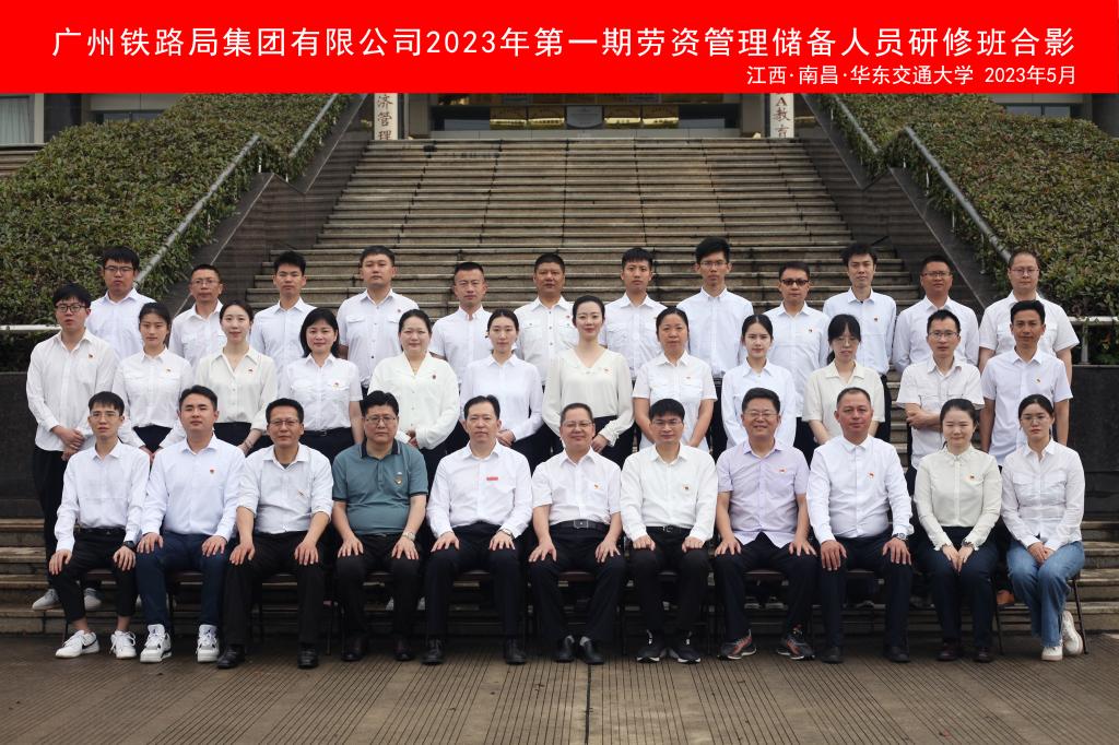 中国铁路广州局集团有限公司2023年第一期劳资管理储备人员研修班合影。