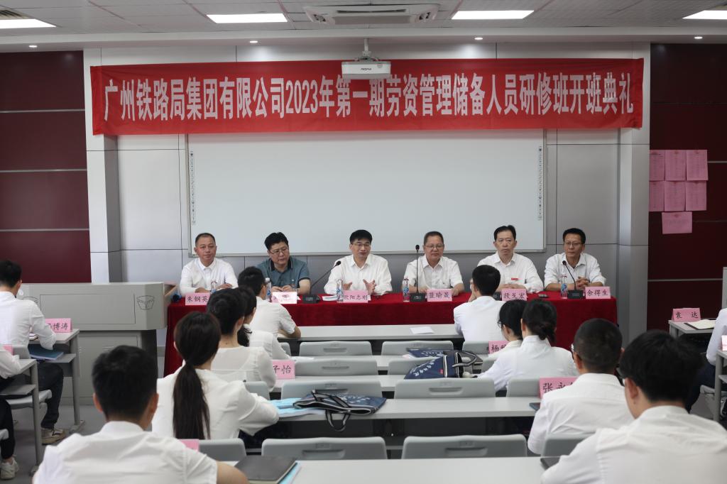 中国铁路广州局集团有限公司2023年第一期劳资管理储备人员研修班开班典礼现场。
