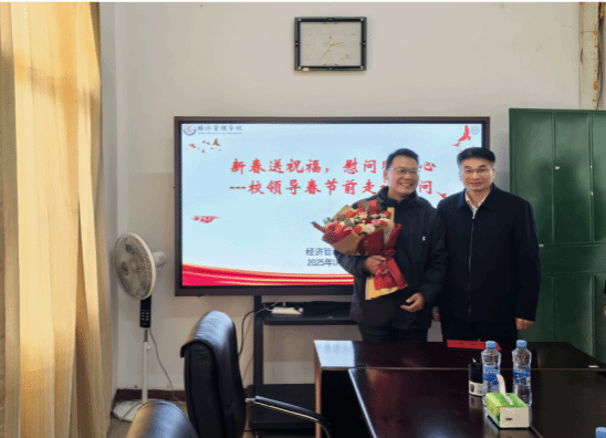 2025年1月9日,在春节即将来临之际,太阳集团2007党委委员、副校长欧阳志刚走访慰问经管学院教师代表。