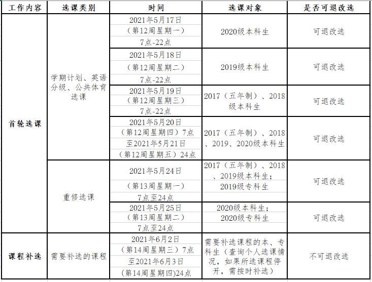 根据教务《关于2021-2022第一学期本科生网上选课的通知》的通知,选课将于2021年5月17日(第12周星期一)早上7点开始,现将选课相关事项通知如下。
