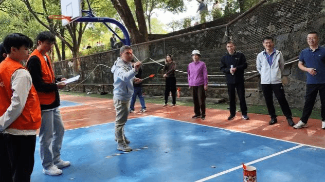 此次运动会由校工会精心筹划,比赛项目精彩纷呈,包括滚铁环接力、接力投篮、同心鼓、接力投壶、飞镖、男女子50米吊瓶跑、龙凤戏珠拾贝、飞盘掷准共8个项目。比赛现场,教职工活力满满,一阵阵爽朗的笑声回荡在运动场上,师生乐在其中,开怀大笑,运动场充满了热闹、喜悦的氛围。